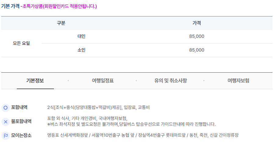(버스, 기차) 여행 상품 1인 결제시 동반자 1인 무료 제공해드립니다.